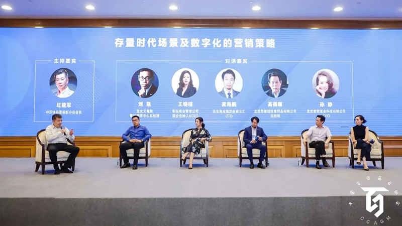 中百協(xié)場(chǎng)景創(chuàng)新分會(huì)會(huì)長(zhǎng)紅建軍主持對(duì)話,對(duì)話題目為“存量時(shí)代場(chǎng)景及數(shù)字化的營(yíng)銷(xiāo)策略”,藍(lán)光文商旅策劃管理中心總經(jīng)理劉凱 、華泓商業(yè)管理公司聯(lián)合創(chuàng)始人&CEO王曉暄、合生商業(yè)集團(tuán)合商云匯CTO龔海鵬、北京思康瑞體育用品有限公司總經(jīng)理高福順、北京楚梵基業(yè)科技有限公司CEO孫靜作為嘉賓參加分享。