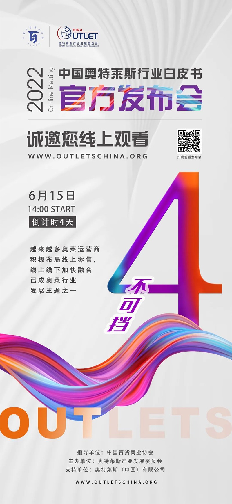 2022年6月15日14:00,《2022年中國奧特萊斯行業(yè)白皮書》線上發(fā)布會即將正式開始,本次發(fā)布會,將對國內(nèi)零售市場及奧萊產(chǎn)業(yè)引入中國20年發(fā)展的經(jīng)驗(yàn)及機(jī)遇做出全新解讀。