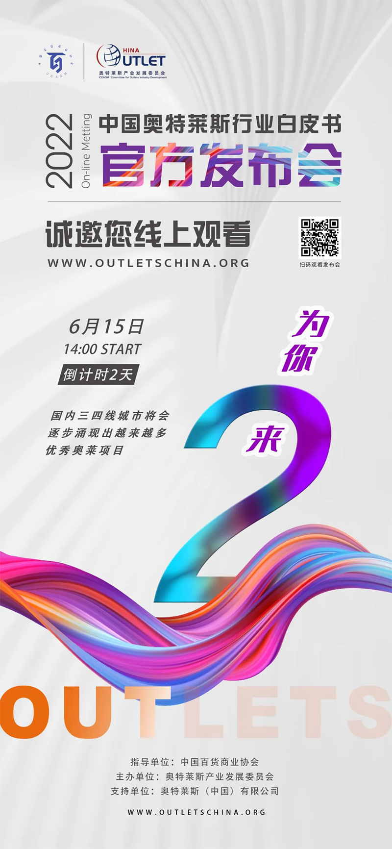 2022年6月15日14:00,《2022年中國(guó)奧特萊斯行業(yè)白皮書》線上發(fā)布會(huì)即將正式開始,本次發(fā)布會(huì),將對(duì)國(guó)內(nèi)零售市場(chǎng)及奧萊產(chǎn)業(yè)引入中國(guó)20年發(fā)展的經(jīng)驗(yàn)及機(jī)遇做出全新解讀。