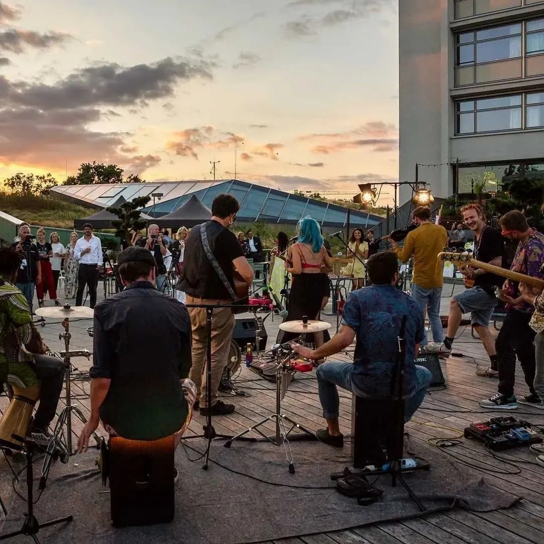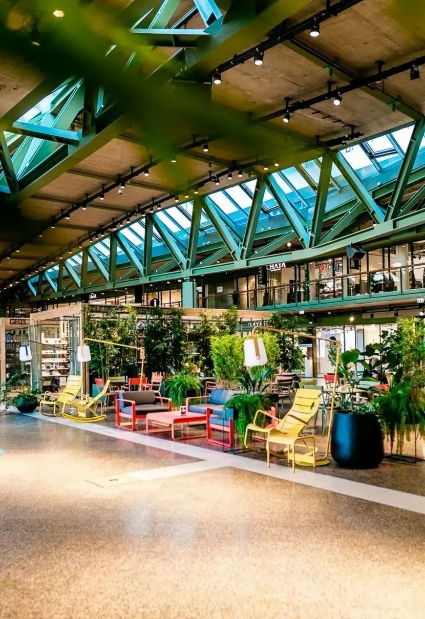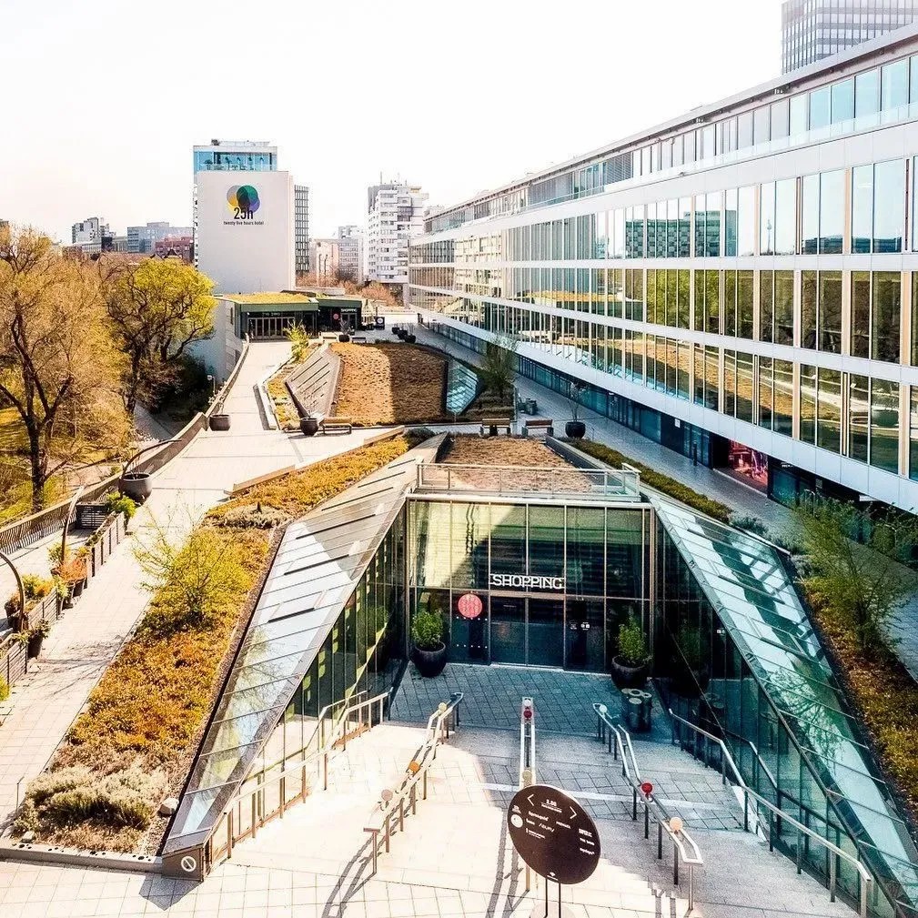 在商業(yè)的二層則設(shè)置了一個開放、通透的公共空間,同柏林潮流酒店25小時(Twenty five hours hotel)進(jìn)行聯(lián)通。并以城市綠洲為設(shè)計概念,在頂層設(shè)計了一個布滿植物盆栽的七千平方公尺的天臺,供給顧客休憩社交,營造自由、無拘束的商業(yè)氛圍,與項目的整體定位相得益彰。