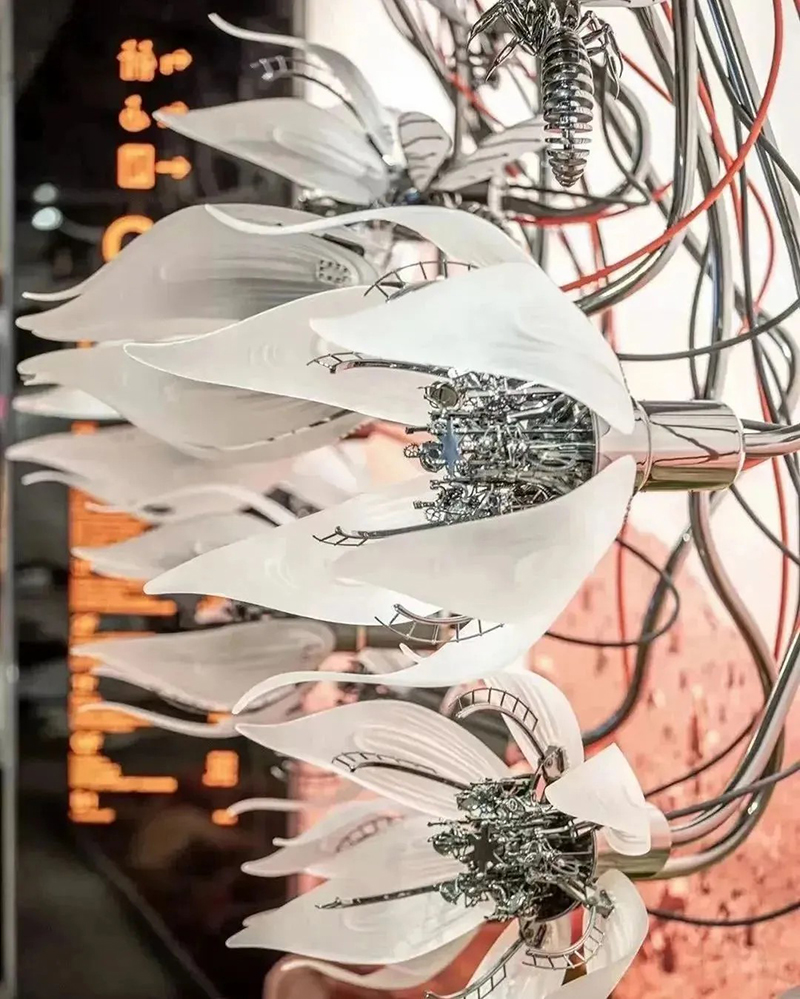 正如北京SKP-S內(nèi)的“未來農(nóng)場”以仿生羊為亮點,成都“平行世界”里猩猩漫步太空引人遐想,武漢SKP亦在負一層SKP-S精心構(gòu)建了特色主題藝術(shù)空間《EARTH 2124》。該空間巧妙劃分為三大區(qū)域:北極熊區(qū)《無邊的浮冰》,寓意著冰川的消融與生命的掙扎;走廊區(qū)《新大陸架》,象征著未來世界的重構(gòu)與探索;企鵝區(qū)《覆羽》,則是對極地生物適應(yīng)環(huán)境、重獲新生的美好愿景。整個空間緊扣“以未來之眼審視全球變暖,攜手極地生靈共繪新篇章”的深刻主題。