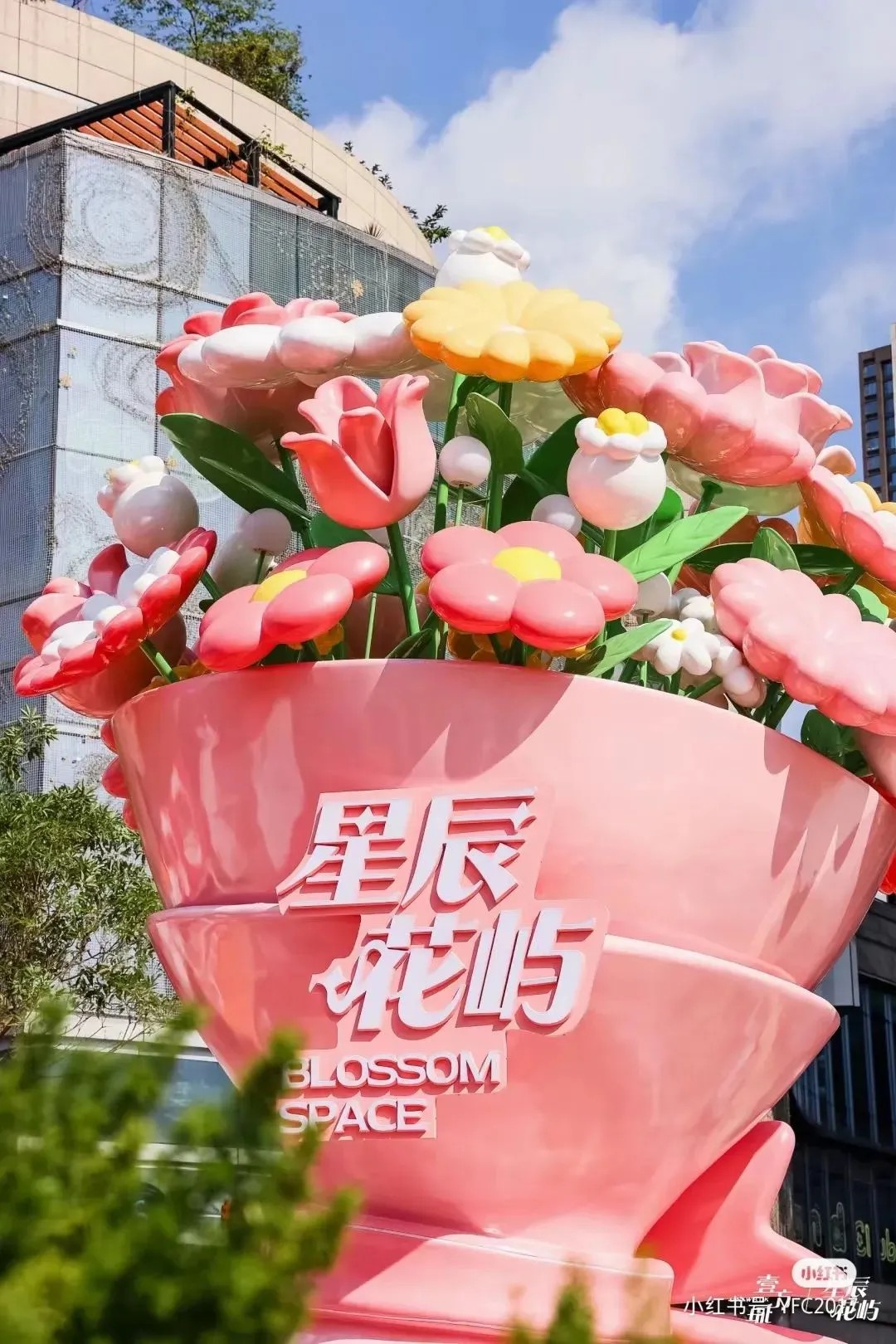 星辰花嶼,占地面積超2000平,酷似一個紅白交織的童話鎮(zhèn)。6米高巨型夢幻花束,是花之庭院最醒目的顯眼包。粉色迷人的大蝴蝶結(jié)、粉白夢幻的巨型花朵,以及姿態(tài)各異的童話小屋,少男少女們穿梭在彌漫著粉紅泡泡的打卡互動區(qū)域,每一幀定格都寫滿了童話般浪漫。