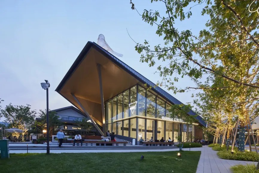 玉鳥集匯聚了近百家品牌,精心構(gòu)建了一個(gè)非標(biāo)準(zhǔn)、定制化的特色商業(yè)空間。這里,既有「星巴克」寵物友好臻選店、「Green&Health」等引領(lǐng)潮流的連鎖品牌,也有「老頭兒油爆蝦」、「茉酸奶」等滿足味蕾享受的美食選擇,更不乏「村民食堂」這樣貼近村民日常生活的餐飲配套。此外,「木墨工藝商店」、「山野餐桌」及「杭一末EMoment」等主理人商業(yè)業(yè)態(tài)的加入,更是為玉鳥集增添了獨(dú)特的文化韻味與個(gè)性魅力,實(shí)現(xiàn)了品牌業(yè)態(tài)的多元化與差異化共存。