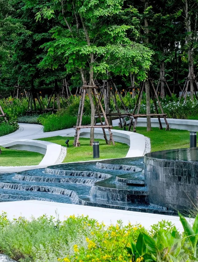 毫無疑問,可持續(xù)和綠色生活是當(dāng)下城市居民最為渴求的一種生活狀態(tài)。依托來自于區(qū)位的先天優(yōu)勢(shì),項(xiàng)目東西兩側(cè)毗鄰LUMPHINI公園和Benjakitti公園,加之自身打造了超過50萊的綠色開放空間(泰國(guó)常用面積測(cè)度單位,合計(jì)約8萬平方米),全部綠地連接起來形成一個(gè)占地超過700萊(合計(jì)超過百萬平方米)的巨大“綠洲”。One Bangkok所在區(qū)域可以說是曼谷重要的“綠肺”。