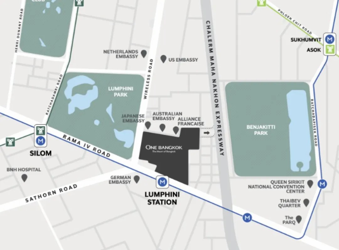Wireless Road 和 Rama IV 路的拐角處,是曼谷市中心熱點(diǎn)區(qū)域的最后一塊土地,將Sathorn、Silom 和 Samyan等主要商圈連通起來,緊靠地鐵LUMPHINI站與輕軌 Ploenchit 站(在該站設(shè)有免費(fèi)穿梭巴士),可完美融入周邊相對(duì)成熟的公共交通系統(tǒng)中。