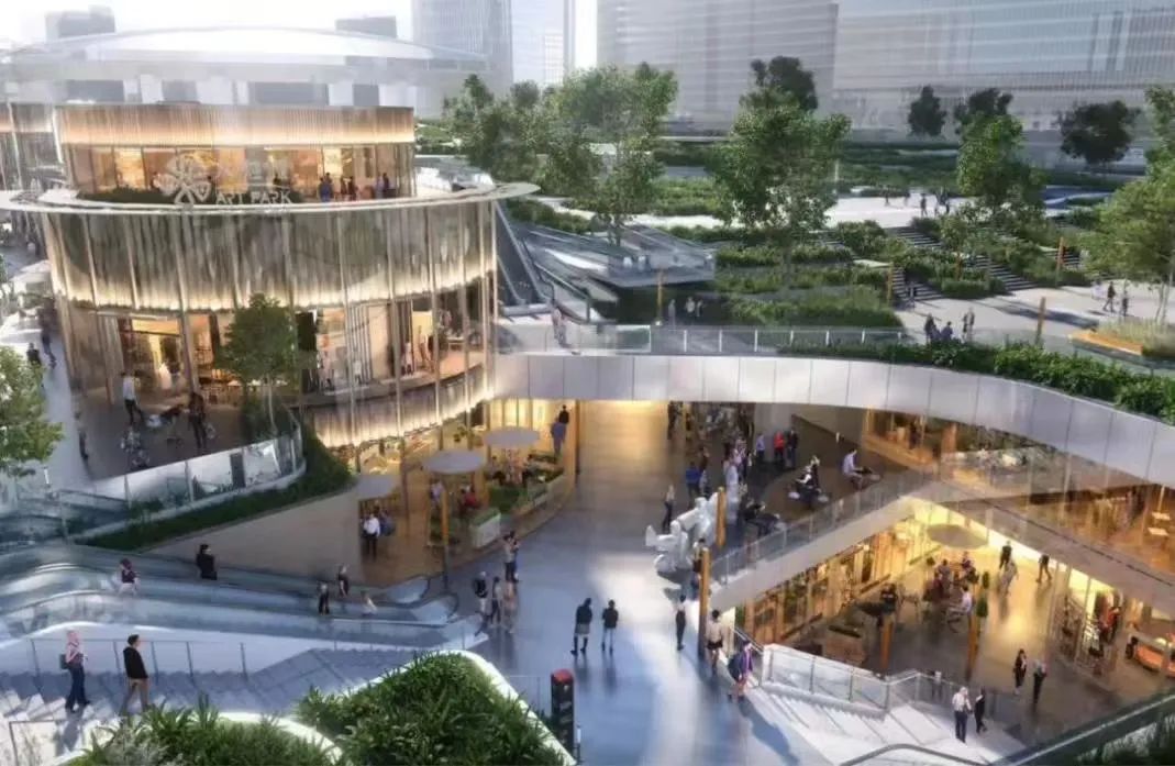 其次,打造公園+商業(yè)的模式,將休閑游憩功能與購(gòu)物娛樂(lè)功能相結(jié)合,滿足消費(fèi)者更多情緒共鳴的需求,如中關(guān)村ART PARK設(shè)計(jì)了若干下沉廣場(chǎng),將地下空間向城市和公園界面開放,打造具有生態(tài)層次感三首層空間規(guī)劃;