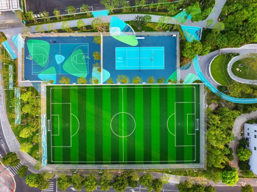 長(zhǎng)約1公里的城市綠軸、涵蓋籃球場(chǎng)、足球場(chǎng)、網(wǎng)球場(chǎng)等多元運(yùn)動(dòng)區(qū)域綠動(dòng)聚落、約3000平方米的開闊大草坪、約1000平方米的萌芽樂(lè)園……讓你全方位接觸大自然。在這里,可以在微風(fēng)和落日余暉下嬉戲玩耍,享受城市中難得的悠閑時(shí)光。