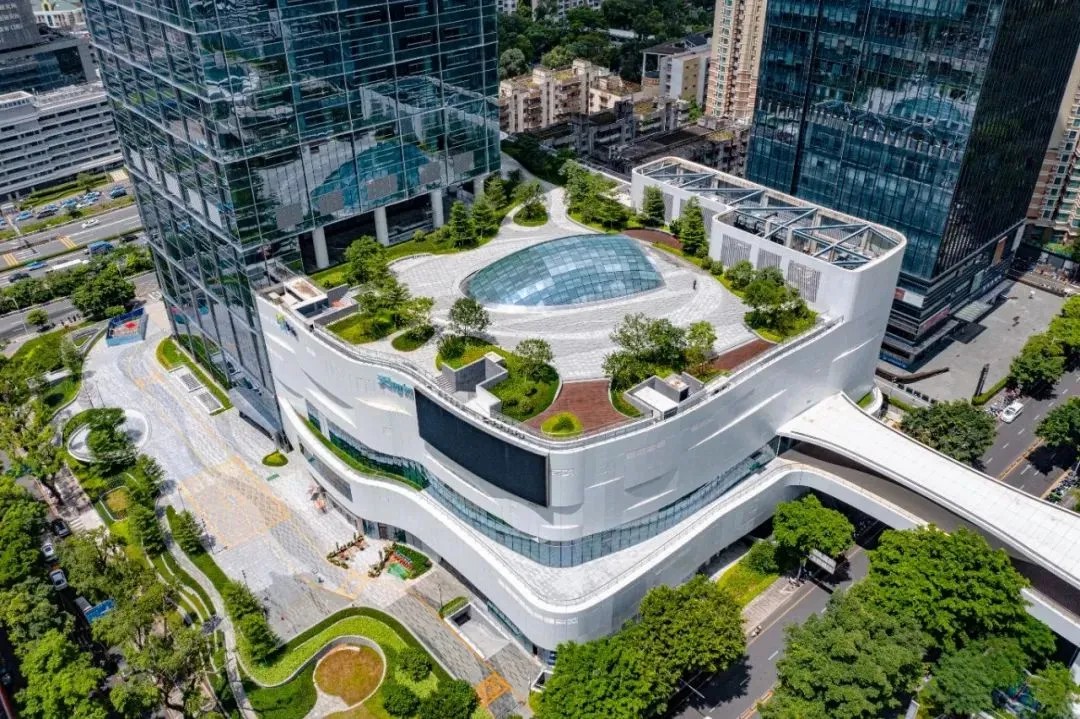 深圳天河城的3萬平方米的屋頂花園,通過空中步廊系統(tǒng)與圍嶺山公園相連,實現(xiàn)了商業(yè)空間與自然環(huán)境的和諧共存。這一設(shè)計為周邊居民提供了一個與自然親密接觸的絕佳休閑平臺。屋頂花園采用了多層退臺式設(shè)計,不僅拓展了開放式的商業(yè)空間,還塑造了一個全生態(tài)的消費環(huán)境,引領(lǐng)了商場設(shè)計的創(chuàng)新趨勢。